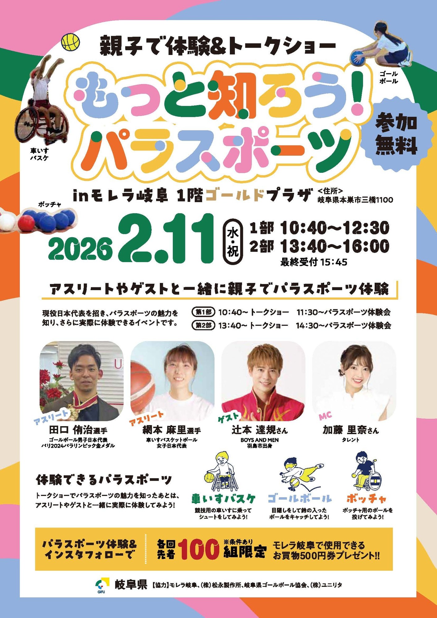 詳しくは下記をご覧ください👇 岐阜県庁HP イベント概要ページ https://www.pref.gifu.lg.jp/page/475354.html モレラ岐阜HP https://share.google/L0HjabDG58CnWcu9V