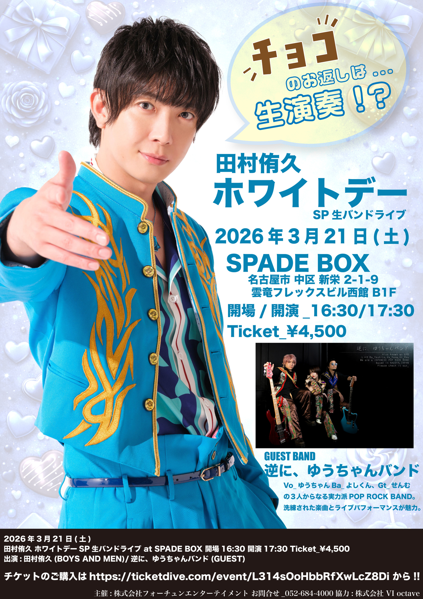 ※更新※3/21「田村侑久ホワイトデーSP生バンドLIVE」開催のお知らせ