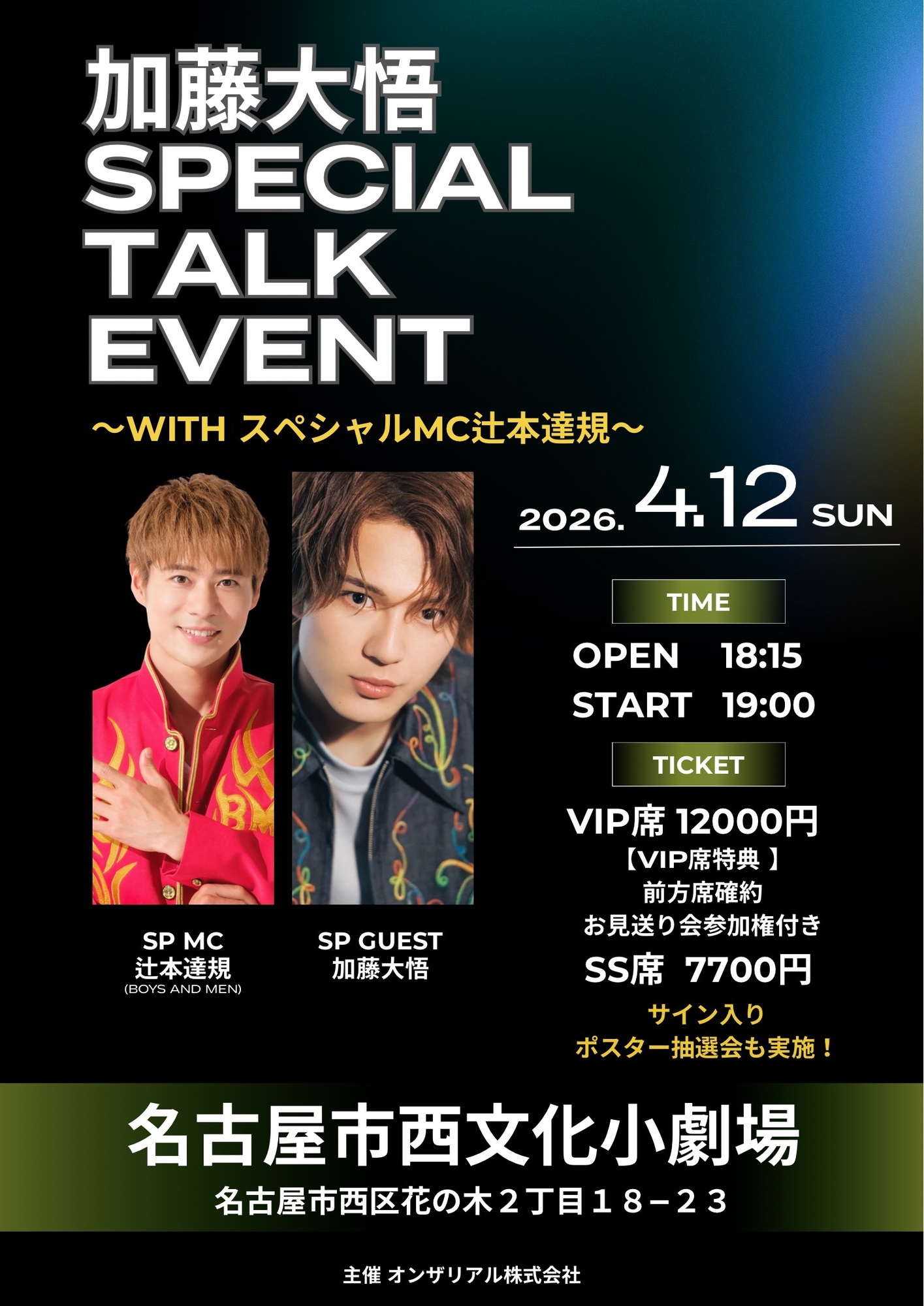 2026/4/12(日)加藤大悟 Special Talk Event 〜withスペシャルMC 辻本達規〜出演のお知らせ