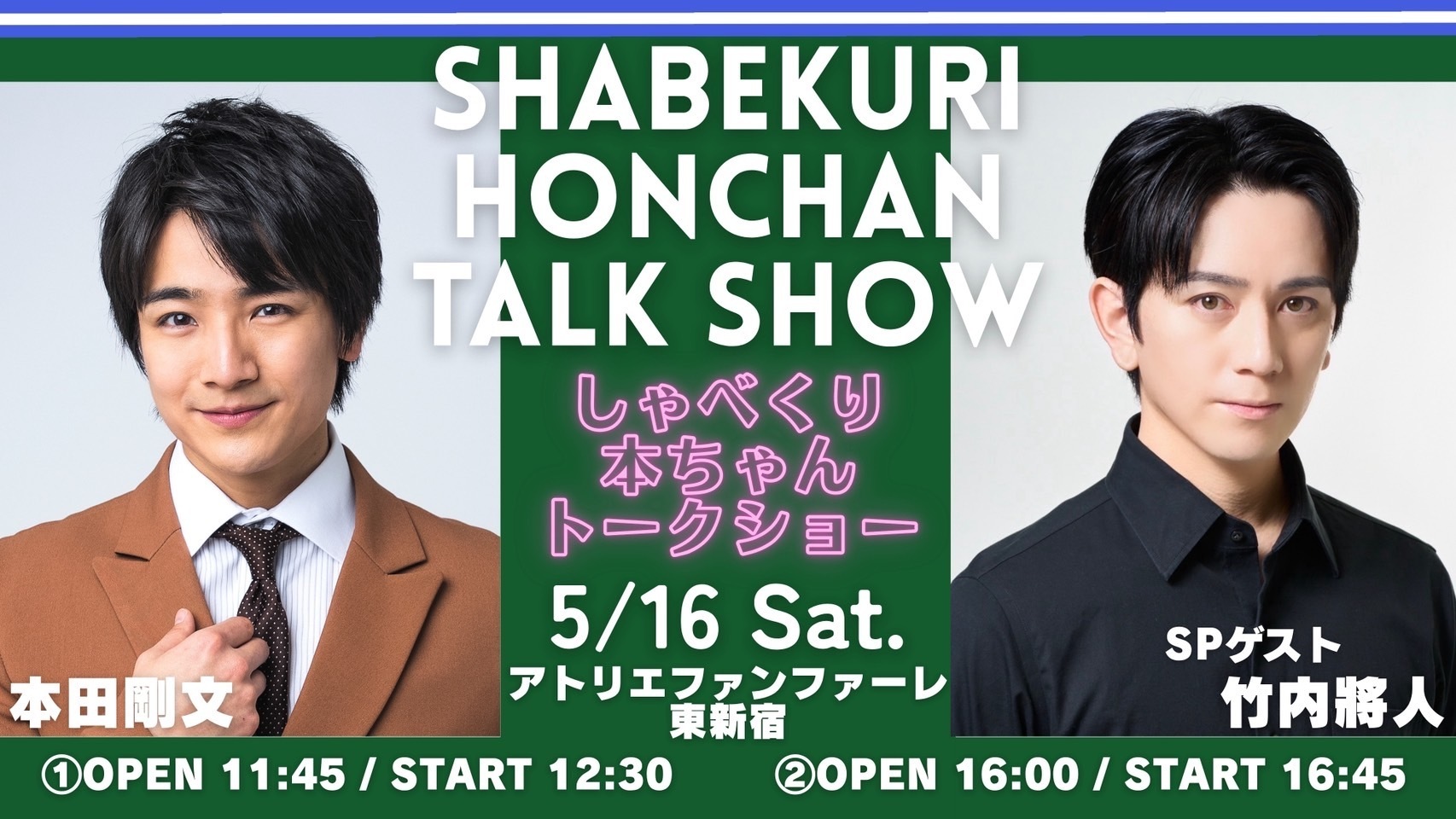2026/5/16(土)「しゃべくり本ちゃんトークショー ゲスト:竹内將人」東京公演開催のお知らせ