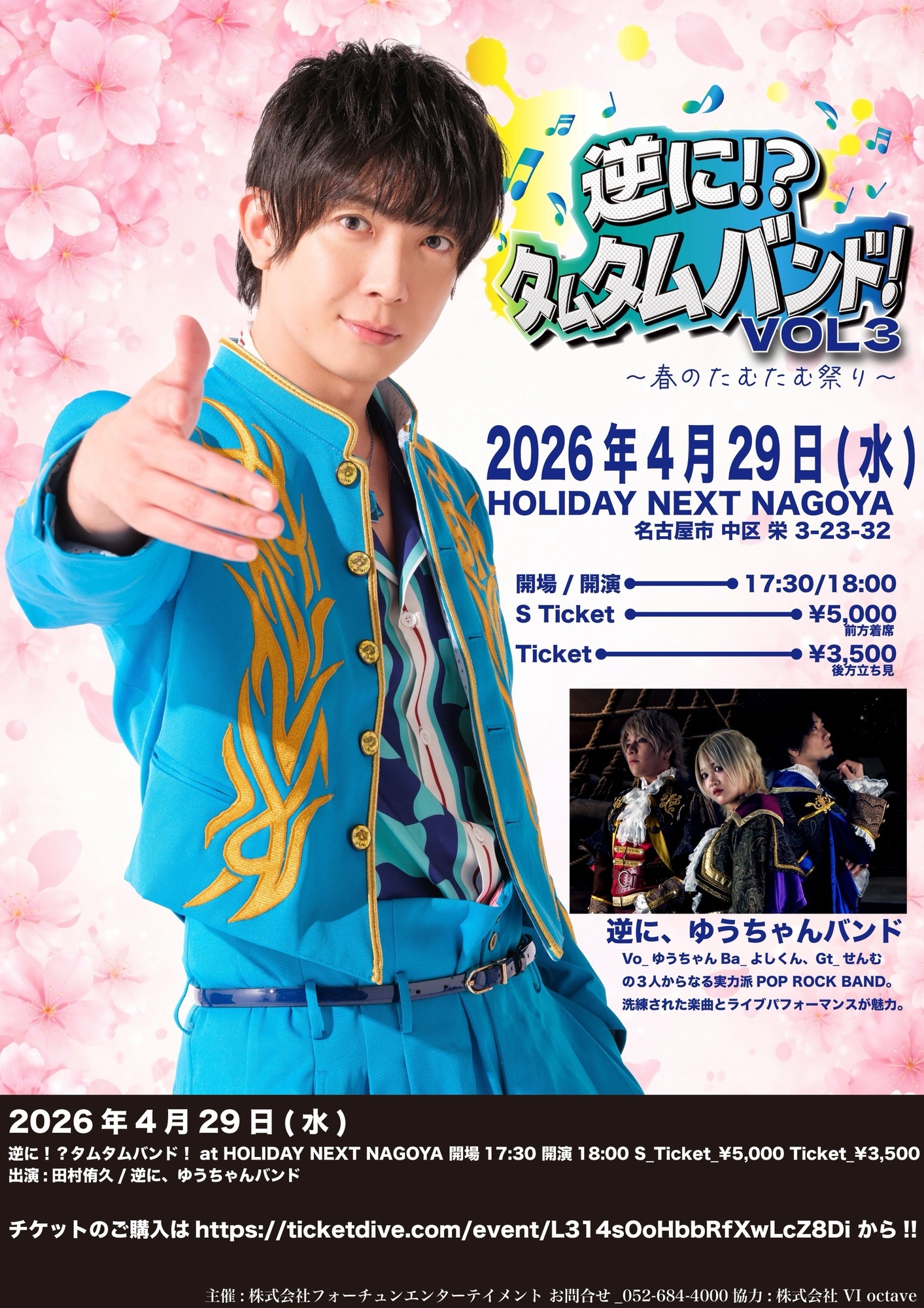 4/29『逆に!?タムタムバンド!VOL3~春のたむたむ祭り~』開催のお知らせ