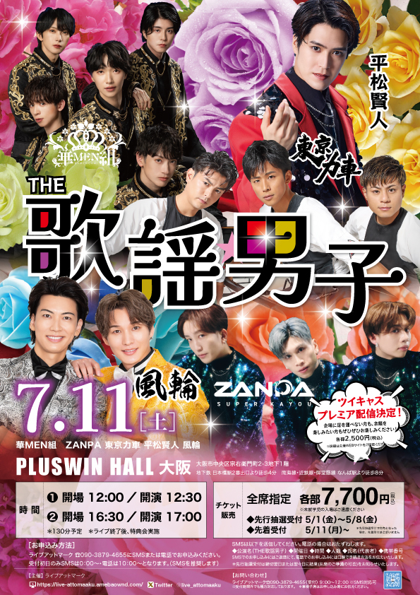 ◆公演名(THE歌謡男子) ◆開催日 ◆時間 ◆人数 ◆氏名(代表者)◆携帯番号